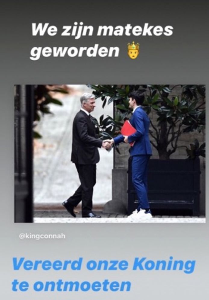 Rousseau verscheen er op witte sneakers en zei voor de audiëntie in zijn instagram stories dat hij op bezoek conner rousseau (sp.a) op bezoek bij koning filip, die diens witte sneakers gadeslaat?